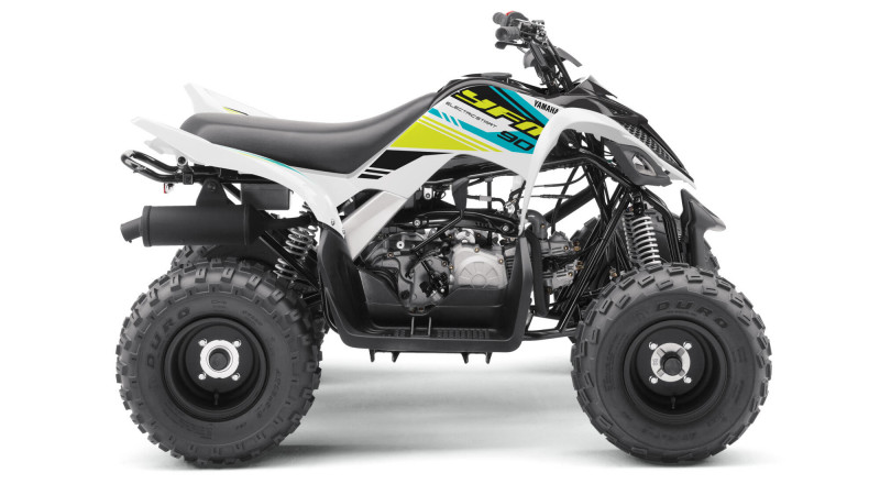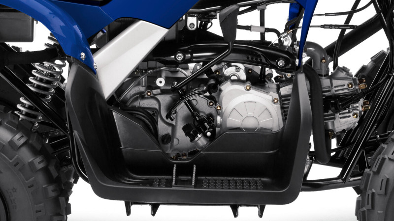 Sa puissance est adaptée à ses caractéristiques techniques afin de vous apporter une parfaite tranquillité d'esprit. Un connecteur relié au boîtier d'allumage permet d'adapter simplement la puissance du moteur au niveau du pilote. Le frein de parking sur le guidon immobilise l'YFM90R à l'endroit où vous l'avez laissé.